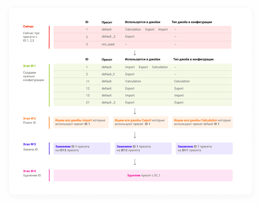 Совместно с аналитиком мы собрали конфигурации для каждого типа операций, однако столкнулись с тем,